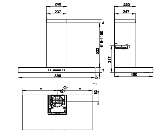 Máy hút mùi âm tủ Hafele với thiết kế lắp âm máy có thể lắp đặt được nhiều vị trí hạn chế về diện tích giúp không gian thêm thông thoáng hơn.