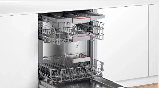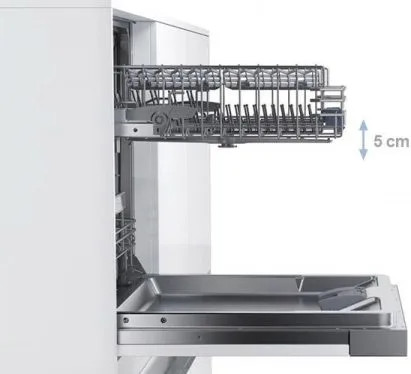 Giỏ thứ ba được thiết kế đặc biệt, nằm ở phía trên của máy rửa bát, mang lại nhiều không gian hơn cho những món đồ nhỏ. Với chân đế có thể di chuyển được, nó cũng làm tăng khả năng chịu tải của giỏ bên dưới, nơi có thể đặt các ly rượu có thân dài. Giỏ thứ ba mở ra một số tùy chọn tải mới, đặc biệt là đối với đồ dùng nhà bếp nhỏ.