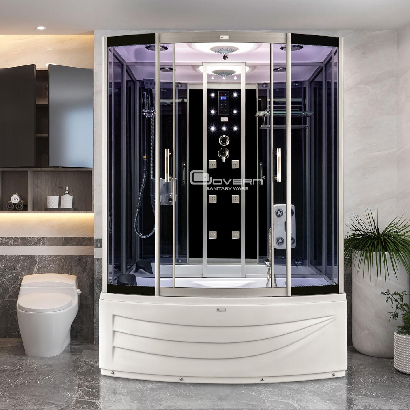 - Có hệ thống FM radio, Loa, Đèn trần, Quạt thông gió, Kệ đựng đồ, Gương soi, Thanh treo khăn tắm , Hệ thống thu nước ở đáy.