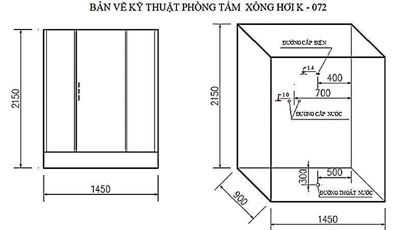 Phần khung của phòng xông hơi được làm bằng hợp kim nhôm mạ crôm, vách ngăn bao quanh được thiết kế bằng loại kính an toàn (kính 2 lớp, kính cường lực màu trắng )