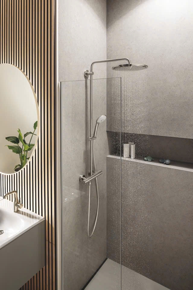 Với vòi sen trần rộng rãi, hệ thống vòi sen GROHE Euphoria XXL bằng thép GROHE SuperSteel mang đến phong cách thiết kế hiện đại và hiệu suất cao cấp cho bất kỳ phòng tắm nào.
