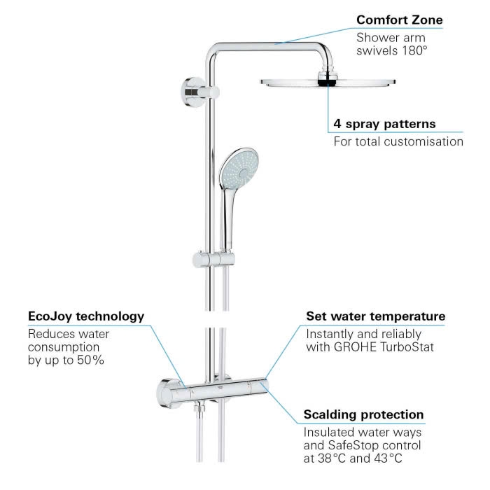 Được sản xuất tại Đức, hệ thống này cũng tích hợp công nghệ tiên tiến nhất của GROHE.