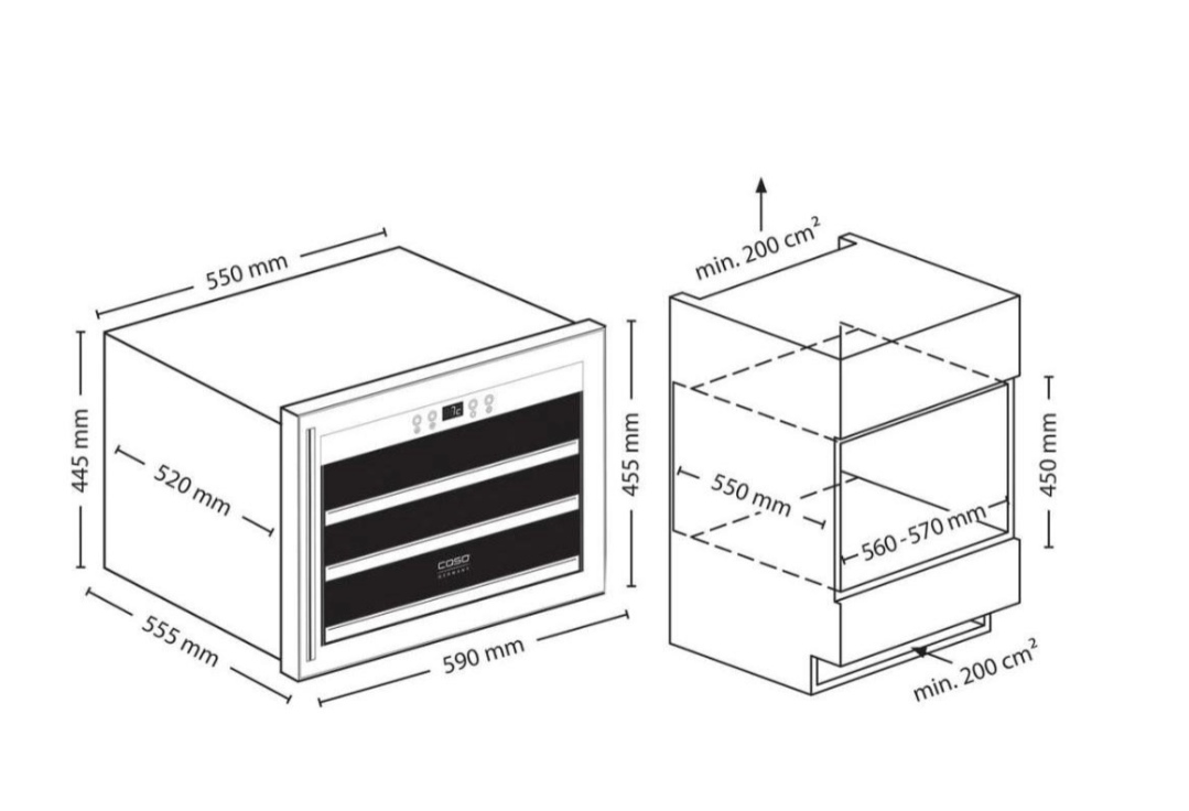 Tủ rượu Caso WineSafe 18EB Black được làm bằng Chất liệu thép sơn tĩnh điện, Cửa chống xước, chống han gỉ sang trong, tinh tế từng đường nét. Thiết kế vượt thời gian với mặt trước được làm bằng thép không gỉ, đảm bảo được độ bền và chất lượng không gì có thể sánh bằng.